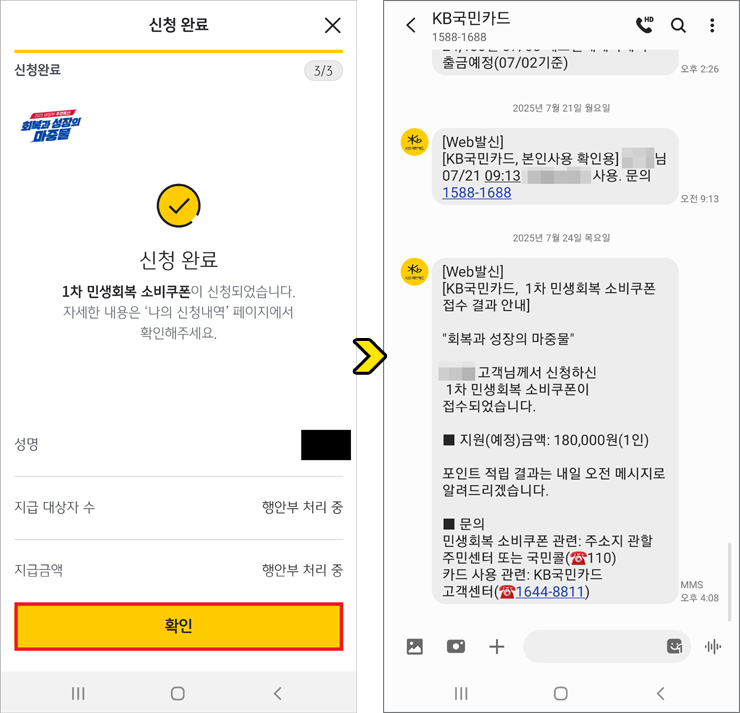 이처럼 민생회복 소비쿠폰 KB Pay 앱 신청 방법은 어렵지 않고 간단하니 기기 조작이 미숙한 분들도 쉽게 신청할 수 있을 것입니다.