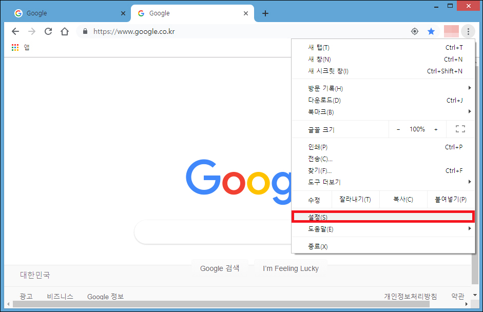 그러면 크롬 자동완성 삭제가 진행되어 각종 기록, 파일, 데이터 종류를 깔끔하게 지울 수 있을 것이며, 다음으로 또 다시 저장되지 않게 설정하기 위해 해제를 해야 되는데 다시 첫 화면으로 돌아와서 우측 상단 점 3개를 누르고 [설정]을 선택하세요.