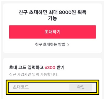 신규로 가입하게 된 분들은 알파벳과 숫자가 조합된 초대코드(=추천인코드)를 입력하면 추천한 사람과 본인 모두 포인트를 획득할 수 있는 보너스 기회를 제공하고 있어 필수로 입력하기 위해 진행하려는 분들이 많은데요.
